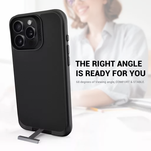 The ProView case features a discreetly placed kickstand made of high-quality aluminium alloy. This kickstand securely holds your phone in an upright horizontal or vertical position, allowing for hands-free enjoyment while watching your favourite videos.