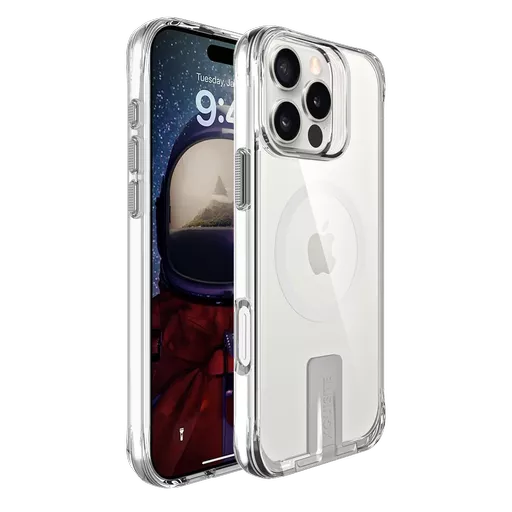 The ProView Magsafe case features a discreetly placed kickstand made of high-quality aluminium alloy. This kickstand securely holds your phone in an upright horizontal or vertical position, allowing for hands-free enjoyment while watching your favourite videos.