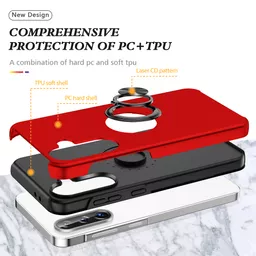 "description": "<p style=\"margin-bottom:11px\"><span style=\"font-size:11pt\"><span style=\"line-height:107%\"><span style=\"font-family:Calibri,sans-serif\"><span style=\"font-size:11.5pt\"><span style=\"line-height:107%\"><span style=\"font-family:\"Helvetica\",sans-serif\">The new Ring Armour Case is meticulously designed to offer ultimate convenience and comprehensive protection for your phone. This case stands out with its innovative 360 Degrees Ring Kick Stand, a robust Dual Layer Design, and exceptional scratch resistance. It is the perfect blend of functionality and style, ensuring your device remains safe and looks great.<\/span><\/span><\/span><\/span><\/span><\/span><\/p><p style=\"margin-bottom:11px\"><span style=\"font-size:11pt\"><span style=\"line-height:107%\"><span style=\"font-family:Calibri,sans-serif\"><b><span style=\"font-size:18.0pt\"><span style=\"line-height:107%\"><span style=\"font-family:\"Helvetica\",sans-serif\">360 Degrees Ring Kick Stand<\/span><\/span><\/span><\/b><\/span><\/span><\/span><\/p><p style=\"margin-bottom:11px\"><span style=\"font-size:11pt\"><span style=\"line-height:107%\"><span style=\"font-family:Calibri,sans-serif\"><span style=\"font-size:11.5pt\"><span style=\"line-height:107%\"><span style=\"font-family:\"Helvetica\",sans-serif\">The 360 Degrees Ring Kick Stand is a standout feature of this case. It includes a metal plate bracket that allows for easy attachment to your existing magnetic phone car holder. This feature is incredibly useful for securely holding your phone, reducing the risk of accidental drops. Additionally, it provides a hands-free experience for watching videos, making it perfect for both entertainment and practical use.<\/span><\/span><\/span><\/span><\/span><\/span><\/p><p style=\"margin-bottom:11px\"><span style=\"font-size:11pt\"><span style=\"line-height:107%\"><span style=\"font-family:Calibri,sans-serif\"><b><span style=\"font-size:18.0pt\"><span style=\"line-height:107%\"><span style=\"font-family:\"Helvetica\",sans-serif\">Dual Layer Protection<\/span><\/span><\/span><\/b><\/span><\/span><\/span><\/p><p style=\"margin-bottom:11px\"><span style=\"font-size:11pt\"><span style=\"line-height:107%\"><span style=\"font-family:Calibri,sans-serif\"><span style=\"font-size:11.5pt\"><span style=\"line-height:107%\"><span style=\"font-family:\"Helvetica\",sans-serif\">A significant portion of the case is crafted from high-quality Carbon Fibre, which is not only durable but also excellent for heat dissipation. This material ensures that your phone remains cool even during extended use. The case is designed to be thin and sleek, offering a modern look while providing easy access to volume buttons and other controls.<\/span><\/span><\/span><\/span><\/span><\/span><\/p><p><span style=\"font-size:11.5pt\"><span style=\"line-height:107%\"><span style=\"font-family:\"Helvetica\",sans-serif\">The Ring Armour Case features a dual-layer construction, combining PC (Polycarbonate) and TPU (Thermoplastic Polyurethane) materials. This design offers superior protection against scratches, bumps, and drops, ensuring your phone remains in pristine condition. Despite its robust protective features, the case is made from lightweight materials, preventing any unnecessary bulk or weight. This ensures that your device remains comfortable to hold and easy to carry.<\/span><\/span><\/span><\/p>",