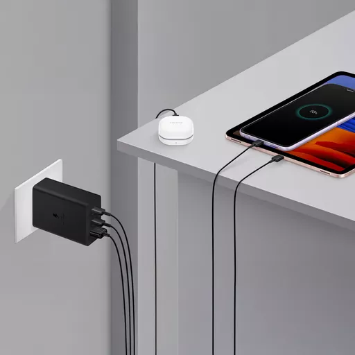 Step into a future where speed meets security, and convenience is the standard—all with the powerful and versatile Samsung 65W Triple Port Wall Charger in sleek black.