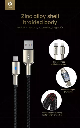 "name": "Devia - 20x Power Delivery Zinc Alloy Braided Cables Set - 1m - 5x USB-C to Non-MFI Lightning, 10x USB-C, & 5x USB to Non-MFI Lightning Cables - Black",