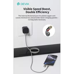 The Devia cable is built to power your devices rapidly and safely. With support for up to 60W charging on USB-C to USB-C connections and an impressive 27W through the USB-C to iPhone interface, your gadgets receive the power they need when they need it. For USB to Type-C and USB to iP connections, a steady 2.4A current ensures dependable performance, making it a versatile companion that balances both high-speed charging and steady power delivery.