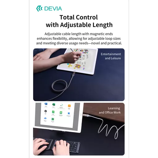 "content": "&lt;p style=&quot;margin-bottom:11px&quot;&gt;&lt;span style=&quot;font-size:11pt&quot;&gt;&lt;span style=&quot;line-height:107%&quot;&gt;&lt;span style=&quot;font-family:Calibri,sans-serif&quot;&gt;&lt;span style=&quot;font-size:11.5pt&quot;&gt;&lt;span style=&quot;line-height:107%&quot;&gt;&lt;span style=&quot;font-family:&quot;Helvetica&quot;,sans-serif&quot;&gt;Embrace a new era of connectivity with the Devia 4in1 Multifunctional Woven Magnetic Cable, where exceptional design meets groundbreaking functionality to elevate your everyday tech interactions.&lt;\/span&gt;&lt;\/span&gt;&lt;\/span&gt;&lt;\/span&gt;&lt;\/span&gt;&lt;\/span&gt;&lt;\/p&gt;&lt;p style=&quot;margin-bottom:11px&quot;&gt;&lt;span style=&quot;font-size:11pt&quot;&gt;&lt;span style=&quot;line-height:107%&quot;&gt;&lt;span style=&quot;font-family:Calibri,sans-serif&quot;&gt;&lt;b&gt;&lt;span style=&quot;font-size:18.0pt&quot;&gt;&lt;span style=&quot;line-height:107%&quot;&gt;&lt;span style=&quot;font-family:&quot;Helvetica&quot;,sans-serif&quot;&gt;Robust Design and Construction&lt;\/span&gt;&lt;\/span&gt;&lt;\/span&gt;&lt;\/b&gt;&lt;\/span&gt;&lt;\/span&gt;&lt;\/span&gt;&lt;\/p&gt;&lt;p style=&quot;margin-bottom:11px&quot;&gt;&lt;span style=&quot;font-size:11pt&quot;&gt;&lt;span style=&quot;line-height:107%&quot;&gt;&lt;span style=&quot;font-family:Calibri,sans-serif&quot;&gt;&lt;span style=&quot;font-size:11.5pt&quot;&gt;&lt;span style=&quot;line-height:107%&quot;&gt;&lt;span style=&quot;font-family:&quot;Helvetica&quot;,sans-serif&quot;&gt;Experience a fusion of design and utility with the Devia 4in1 Multifunctional Woven Magnetic Cable in Titanium. Crafted with a robust aluminium shell paired with a durable braided exterior, this cable delivers unmatched longevity and a premium finish. Its magnetic design enhances ease of use, letting you connect with confidence and minimal fuss. The Titanium Original colour not only complements modern tech aesthetics but also symbolizes the superior quality and resilience embedded within every inch of the cable.&lt;\/span&gt;&lt;\/span&gt;&lt;\/span&gt;&lt;\/span&gt;&lt;\/span&gt;&lt;\/span&gt;&lt;\/p&gt;&lt;p style=&quot;margin-bottom:11px&quot;&gt;&lt;span style=&quot;font-size:11pt&quot;&gt;&lt;span style=&quot;line-height:107%&quot;&gt;&lt;span style=&quot;font-family:Calibri,sans-serif&quot;&gt;&lt;b&gt;&lt;span style=&quot;font-size:18.0pt&quot;&gt;&lt;span style=&quot;line-height:107%&quot;&gt;&lt;span style=&quot;font-family:&quot;Helvetica&quot;,sans-serif&quot;&gt;Efficient Charging Capabilities&lt;\/span&gt;&lt;\/span&gt;&lt;\/span&gt;&lt;\/b&gt;&lt;\/span&gt;&lt;\/span&gt;&lt;\/span&gt;&lt;\/p&gt;&lt;p style=&quot;margin-bottom:11px&quot;&gt;&lt;span style=&quot;font-size:11pt&quot;&gt;&lt;span style=&quot;line-height:107%&quot;&gt;&lt;span style=&quot;font-family:Calibri,sans-serif&quot;&gt;&lt;span style=&quot;font-size:11.5pt&quot;&gt;&lt;span style=&quot;line-height:107%&quot;&gt;&lt;span style=&quot;font-family:&quot;Helvetica&quot;,sans-serif&quot;&gt;The Devia cable is built to power your devices rapidly and safely. With support for up to 60W charging on USB-C to USB-C connections and an impressive 27W through the USB-C to iPhone interface, your gadgets receive the power they need when they need it. For USB to Type-C and USB to iP connections, a steady 2.4A current ensures dependable performance, making it a versatile companion that balances both high-speed charging and steady power delivery.&lt;\/span&gt;&lt;\/span&gt;&lt;\/span&gt;&lt;\/span&gt;&lt;\/span&gt;&lt;\/span&gt;&lt;\/p&gt;&lt;p style=&quot;margin-bottom:11px&quot;&gt;&lt;span style=&quot;font-size:11pt&quot;&gt;&lt;span style=&quot;line-height:107%&quot;&gt;&lt;span style=&quot;font-family:Calibri,sans-serif&quot;&gt;&lt;b&gt;&lt;span style=&quot;font-size:18.0pt&quot;&gt;&lt;span style=&quot;line-height:107%&quot;&gt;&lt;span style=&quot;font-family:&quot;Helvetica&quot;,sans-serif&quot;&gt;Versatile Connectivity and Performance&lt;\/span&gt;&lt;\/span&gt;&lt;\/span&gt;&lt;\/b&gt;&lt;\/span&gt;&lt;\/span&gt;&lt;\/span&gt;&lt;\/p&gt;&lt;p style=&quot;margin-bottom:11px&quot;&gt;&lt;span style=&quot;font-size:11pt&quot;&gt;&lt;span style=&quot;line-height:107%&quot;&gt;&lt;span style=&quot;font-family:Calibri,sans-serif&quot;&gt;&lt;span style=&quot;font-size:11.5pt&quot;&gt;&lt;span style=&quot;line-height:107%&quot;&gt;&lt;span style=&quot;font-family:&quot;Helvetica&quot;,sans-serif&quot;&gt;At a generous length of 1.2 meters, this cable offers added flexibility while maintaining a sleek, manageable profile. Its multifunctional design caters to a wide range of applications&amp;mdash;from data transfer during high-intensity work sessions to efficient charging during travel or in your car. Weighing only 49 grams, it merges portability with high-performance capability, making it an indispensable tool in the ever-evolving tech world.&lt;\/span&gt;&lt;\/span&gt;&lt;\/span&gt;&lt;\/span&gt;&lt;\/span&gt;&lt;\/span&gt;&lt;span style=&quot;font-size:11pt&quot;&gt;&lt;span style=&quot;line-height:107%&quot;&gt;&lt;span style=&quot;font-family:Calibri,sans-serif&quot;&gt;&lt;span style=&quot;font-size:11.5pt&quot;&gt;&lt;span style=&quot;line-height:107%&quot;&gt;&lt;span style=&quot;font-family:&quot;Helvetica&quot;,sans-serif&quot;&gt;&lt;\/span&gt;&lt;\/span&gt;&lt;\/span&gt;&lt;\/span&gt;&lt;\/span&gt;&lt;\/span&gt;&lt;\/p&gt;"