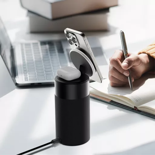 Upgrade your charging experience with the AT Explorer Pro Mag 4-in-1 Charging Stand with Speaker. Streamline your workspace, simplify your charging routine, and enjoy premium sound quality and illumination—all in one stylish package.